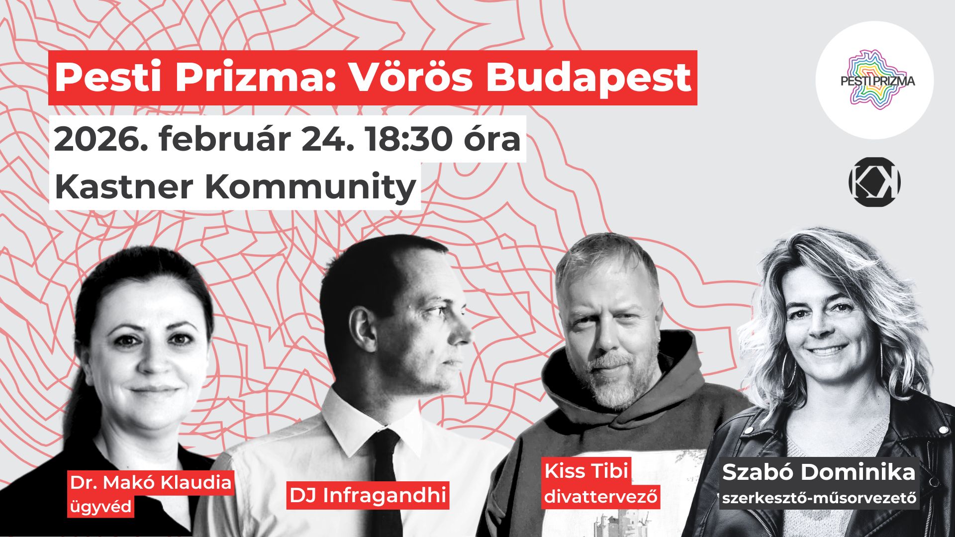 A beszélgetésben szakmailag megalapozott, árnyalt módon kerül szóba a szexmunka jogi és társadalmi háttere, különös tekintettel Budapest és Magyarország jelenlegi kontextusára. Arról beszélgetünk, mit jelent ma jogilag, társadalmilag és emberileg a szexmunka, milyen ellentmondások és kockázatok vannak a szabályozásban, és hogyan hat mindez nagyon is konkrét városi terekre és emberi életekre. Célunk a tabuk lebontása és annak megmutatása, hogy a jog nem elvont rendszer, hanem mindennapi valóság. - Kiss Tibi – divattervező, a Je Suis Belle és az Amore divatmárkák alapító-tervezője.A kortárs divatról mint kulturális és társadalmi nyelvről beszélgetünk: felelősségről, érzékenységről, testképről és identitásról. Arról, hogyan válik a divat túl az esztétikán – és hogyan szövődik bele Budapest kulturális szövetébe.