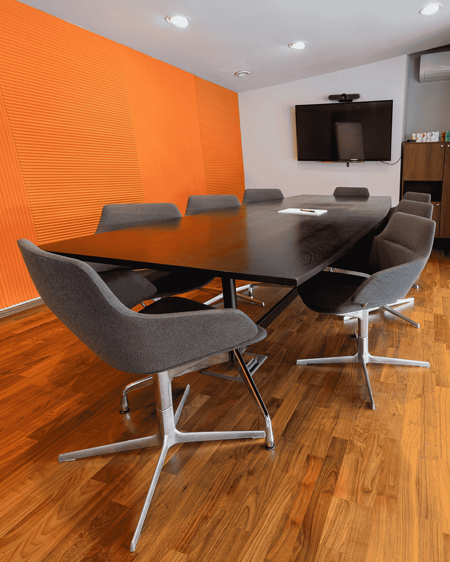 Tárgyalónk nyolc fő befogadására alkalmas. Saját klíma- és szellőző rendszerrel, hang- és fényzáró függönnyel és egyéb extrákkal felszerelt a profi megbeszélésekért.