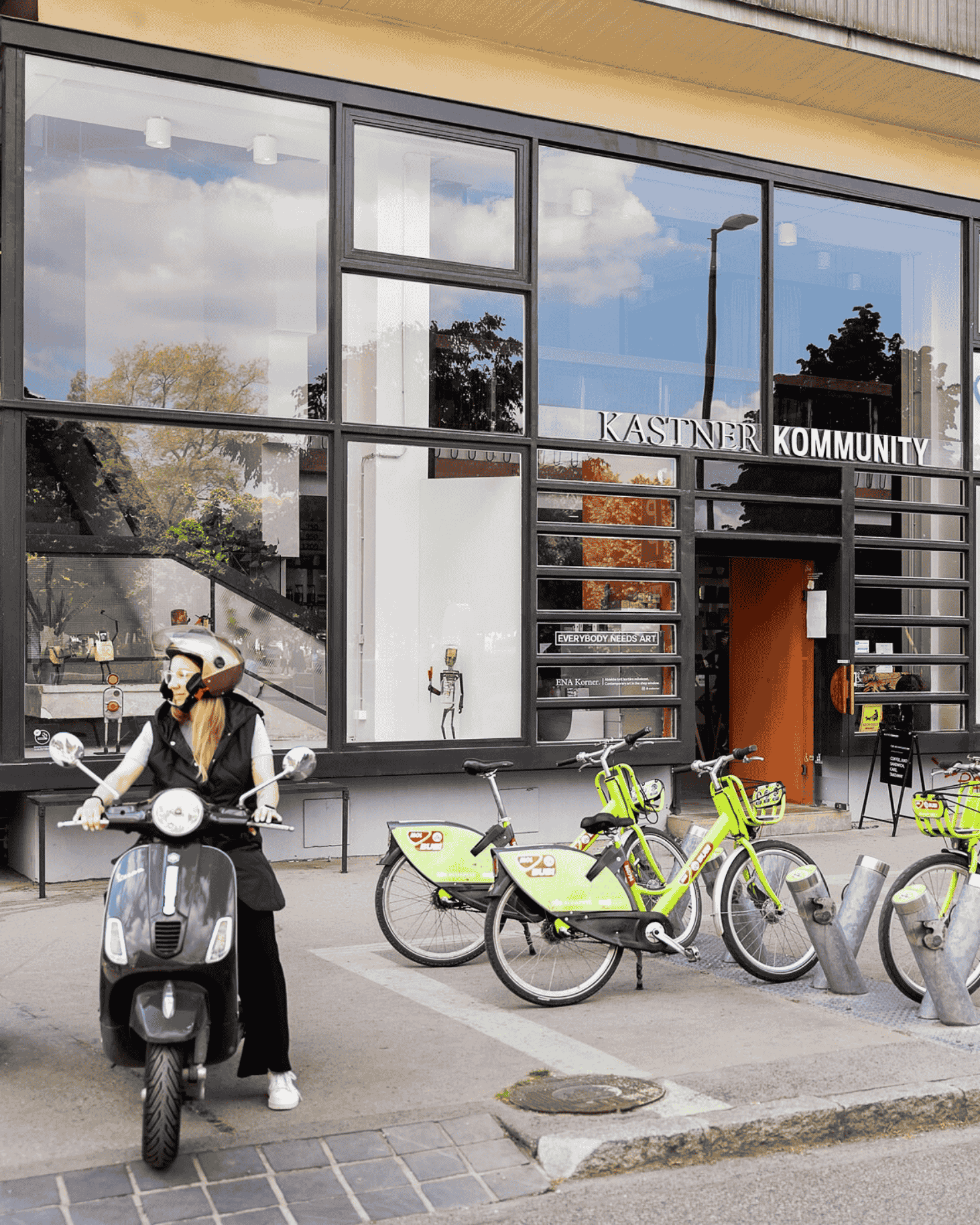 A Kommunity bejárata a II. János Pál pápa téri MOL Bubi állomással szemben található. Az új kétkerekűekkel könnyedén átsuhanhatsz a városon a nap bármely időpontjában. Ha a közösségi kerékpár helyett saját bicajoddal jönnél az üzlet előtti közterületen kiépített tároló vár. Amikor csak teheted válaszd a környezetbarát közlekedési módokat!
